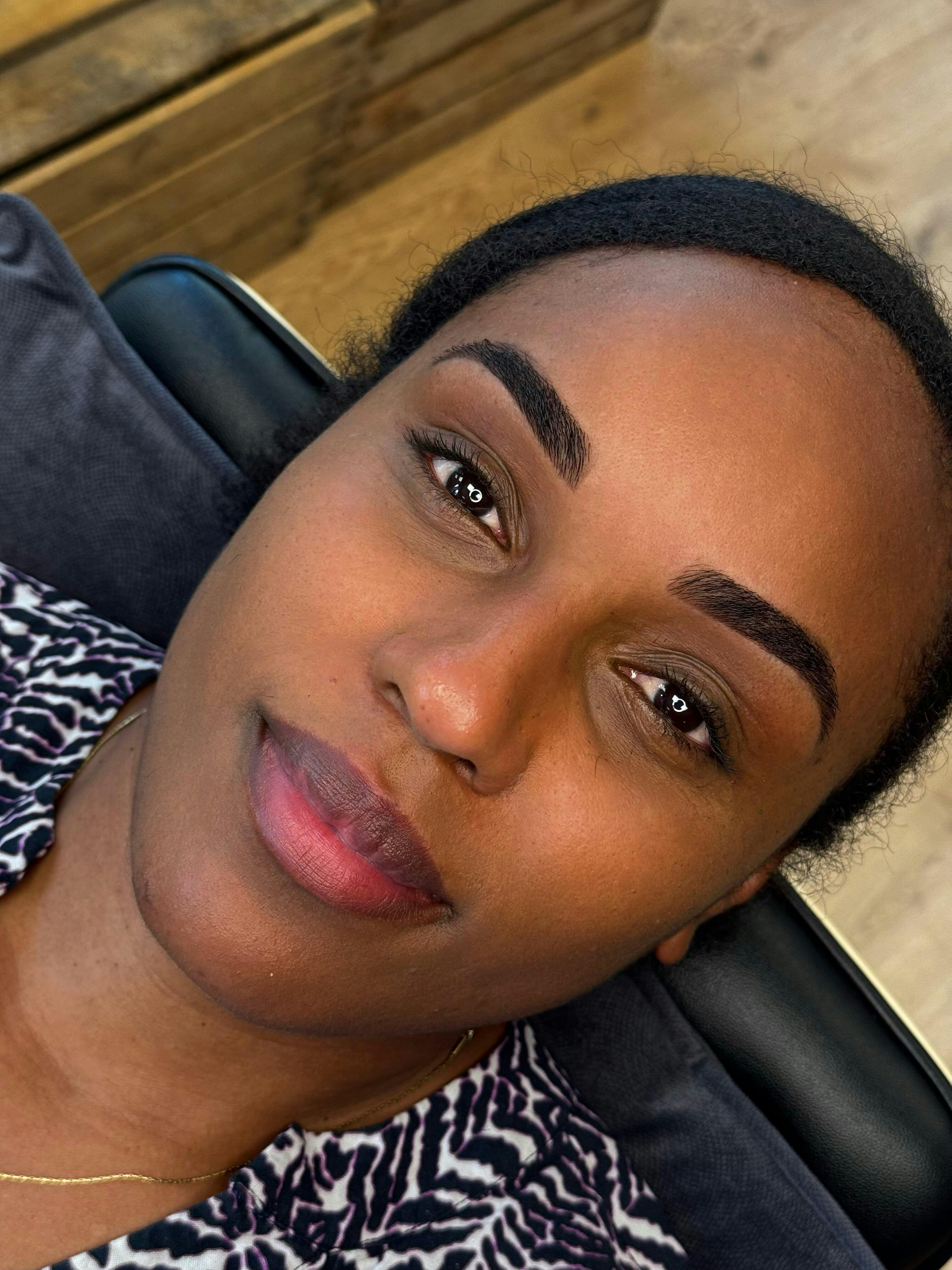 Henna eyebrow tinting involves applying a paste made from henna powder and other natural ingredients onto the eyebrows. The dye stains the skin and the eyebrow hairs, giving them a fuller and more defined appearance.