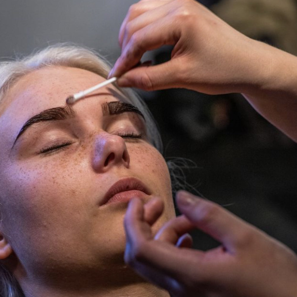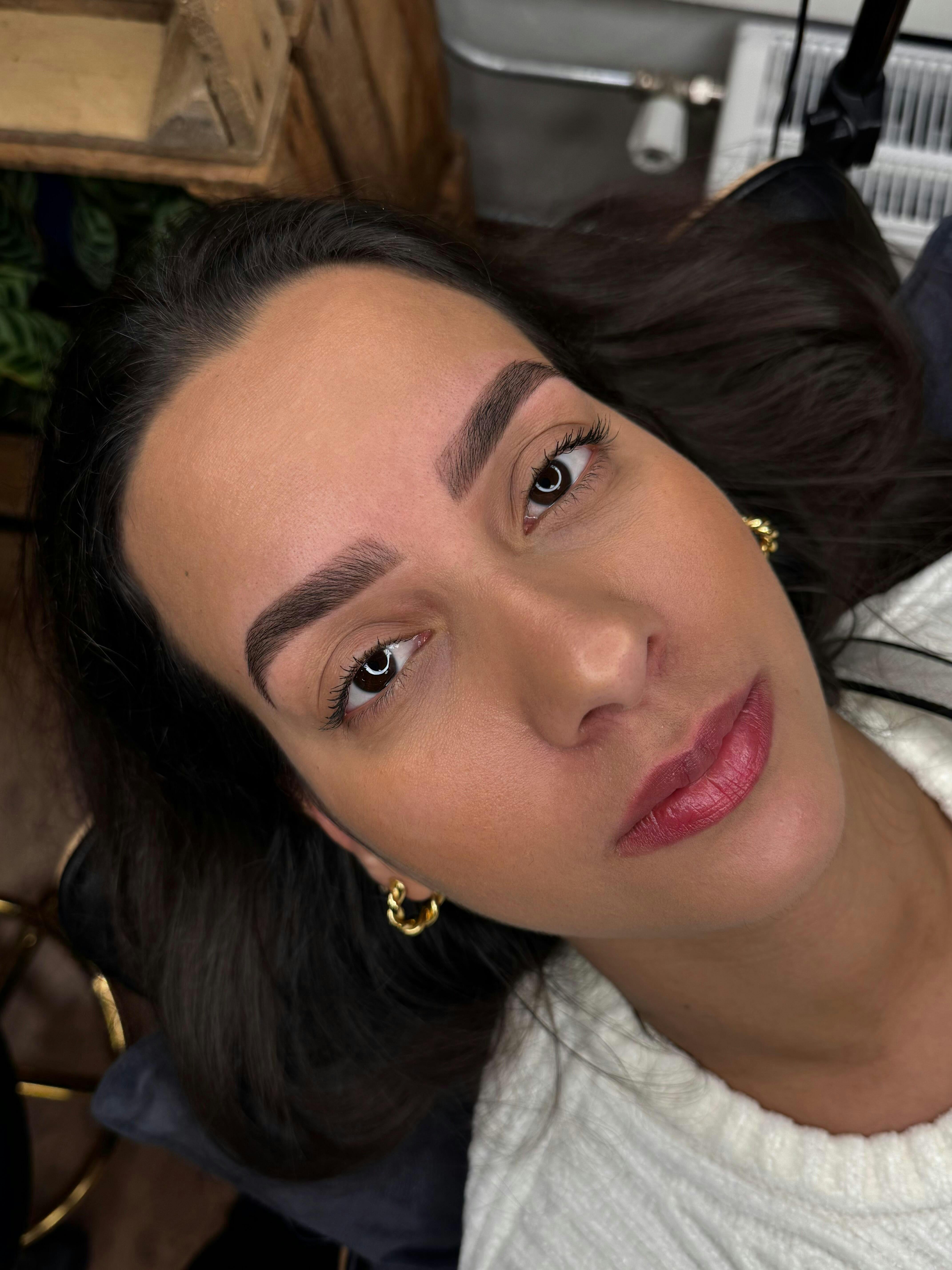 Henna eyebrow tinting involves applying a paste made from henna powder and other natural ingredients onto the eyebrows. The dye stains the skin and the eyebrow hairs, giving them a fuller and more defined appearance.
